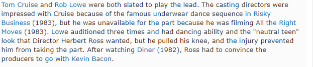 Tom Cruise as Ren McCormack in Footloose?